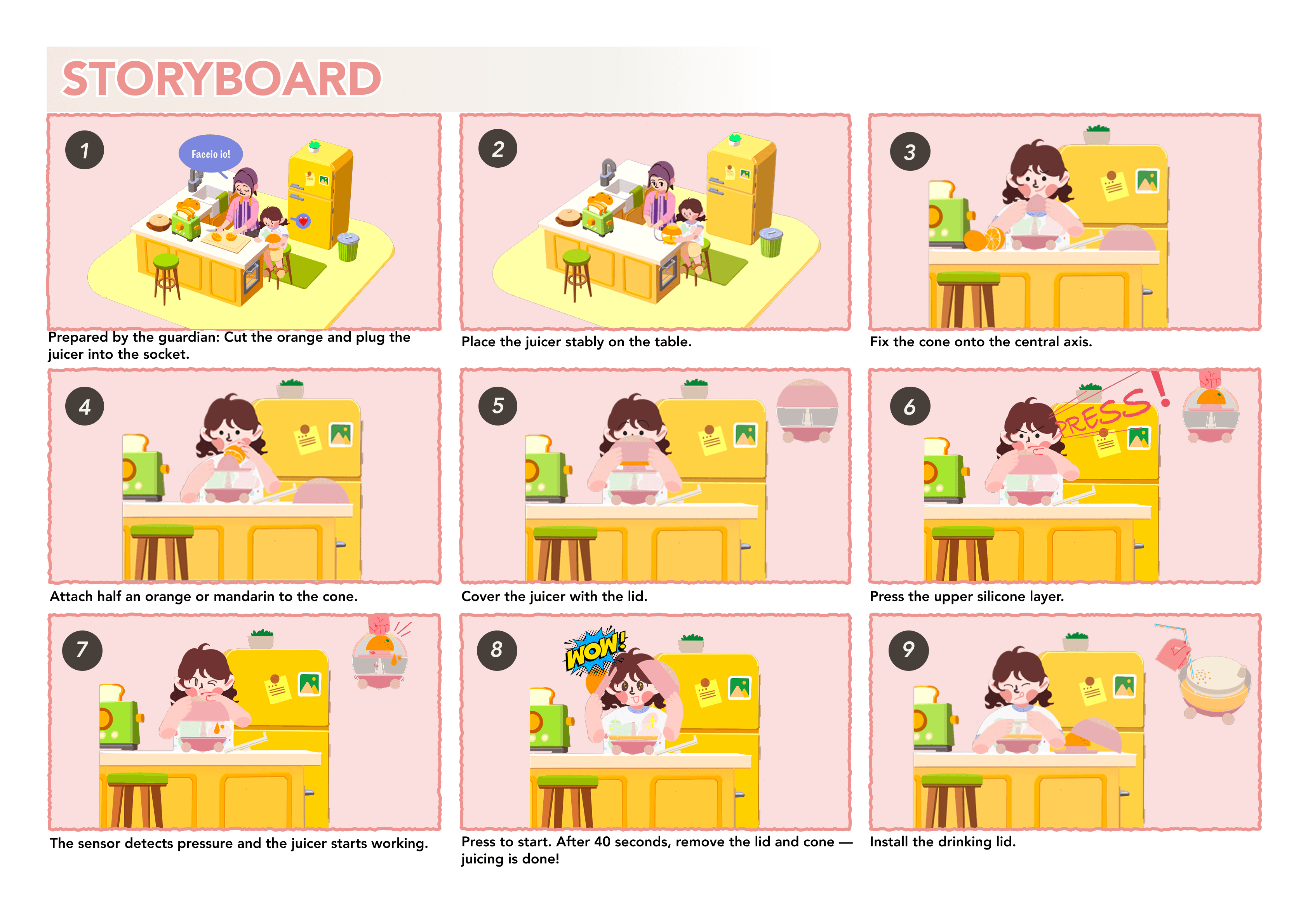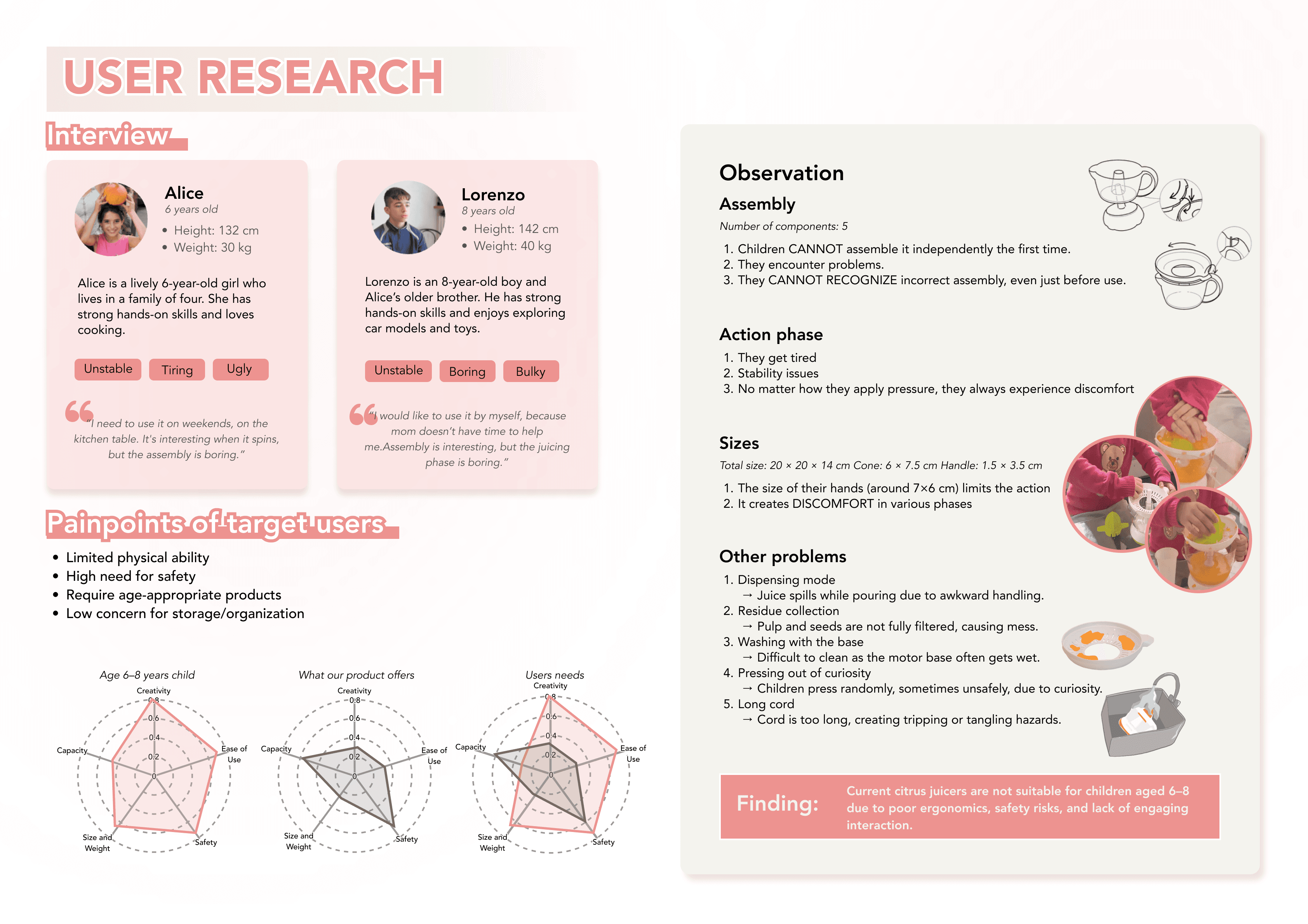 A child-centered redesign of the Kasanova citrus juicer for ages 6–8, improving usability, safety, and play.