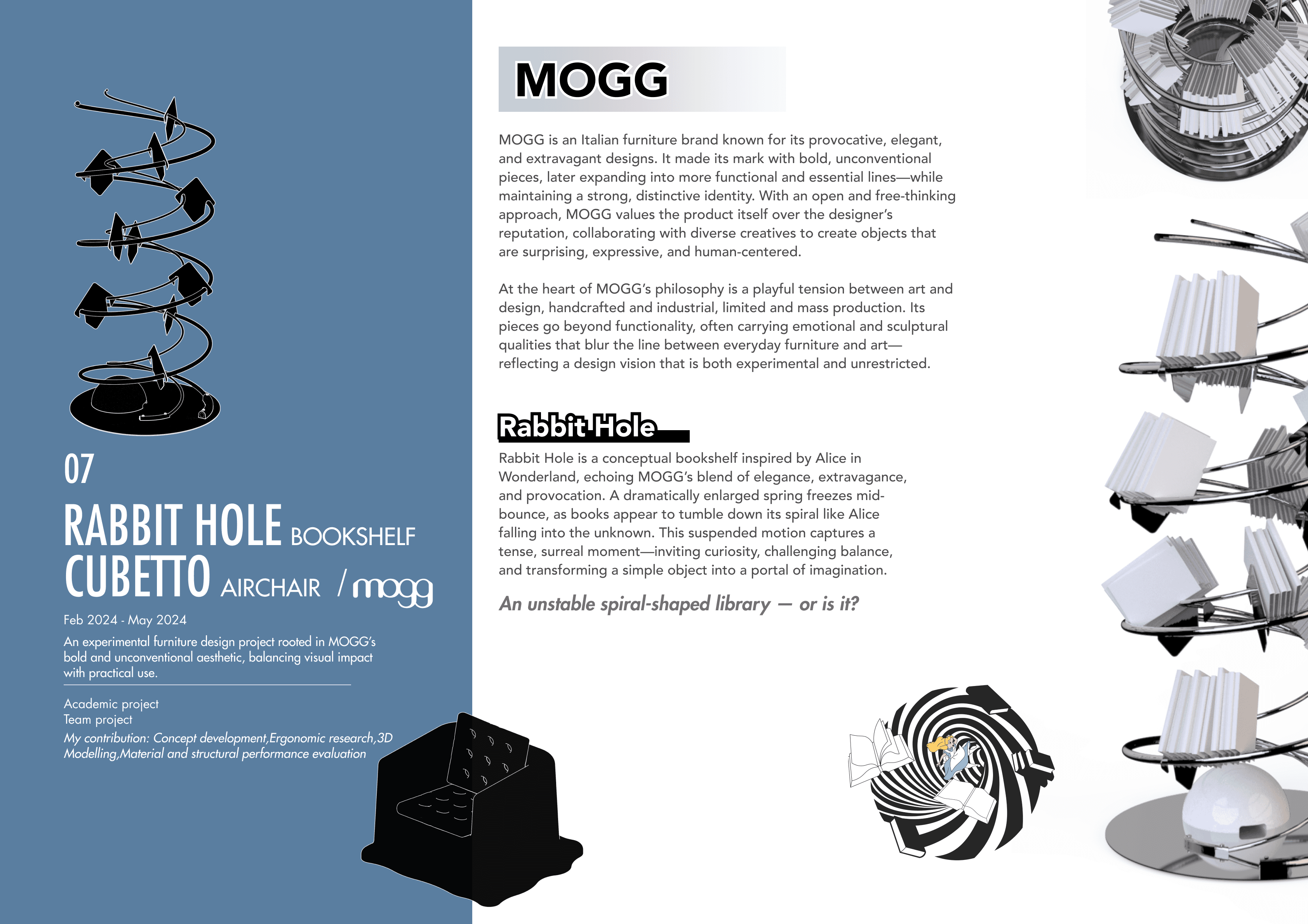 An experimental furniture design project rooted in MOGG’s bold and unconventional aesthetic, balancing visual impact with practical use.